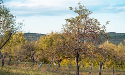 La nici 5 minute de mers pe jos se pot vedea livezi de pomi fructiferi, în special meri.